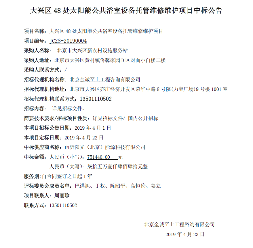 項(xiàng)目名稱:大興區(qū)48處太陽(yáng)能公共浴室設(shè)備托管維修維護(hù)項(xiàng)目