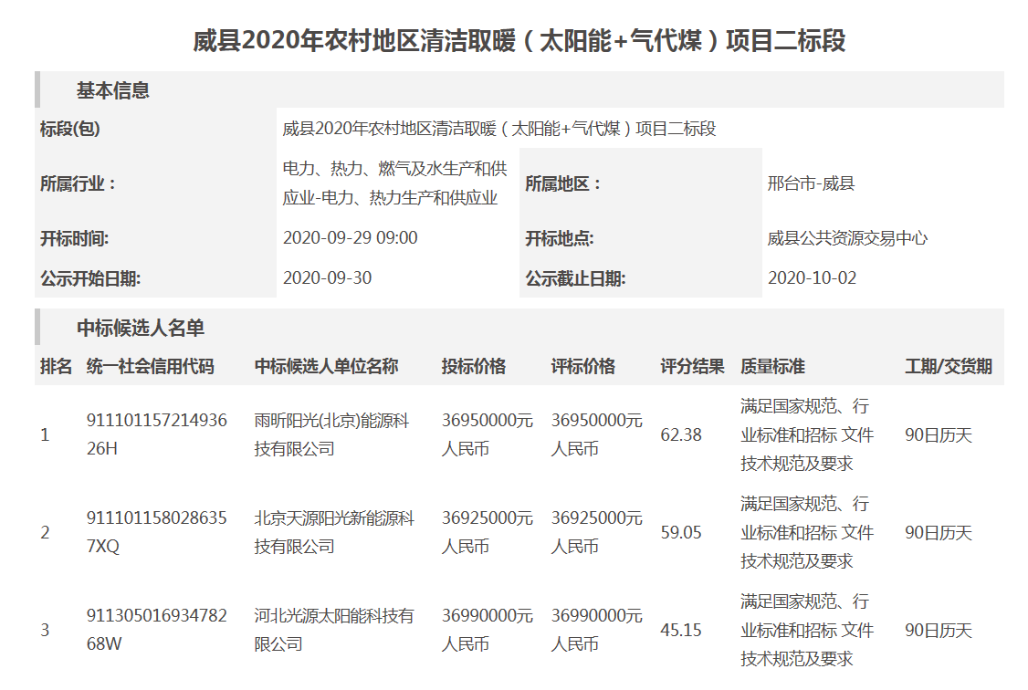 祝賀雨昕陽光中標(biāo)威縣2020年農(nóng)村地區(qū)清潔取暖(太陽能+氣代煤)項(xiàng)目
